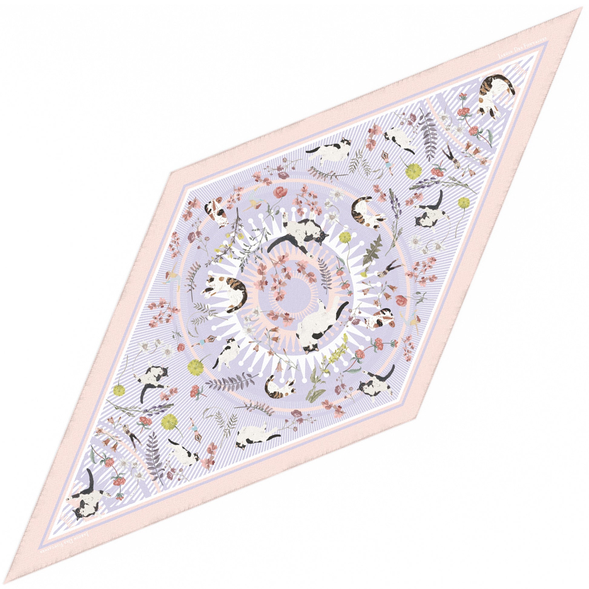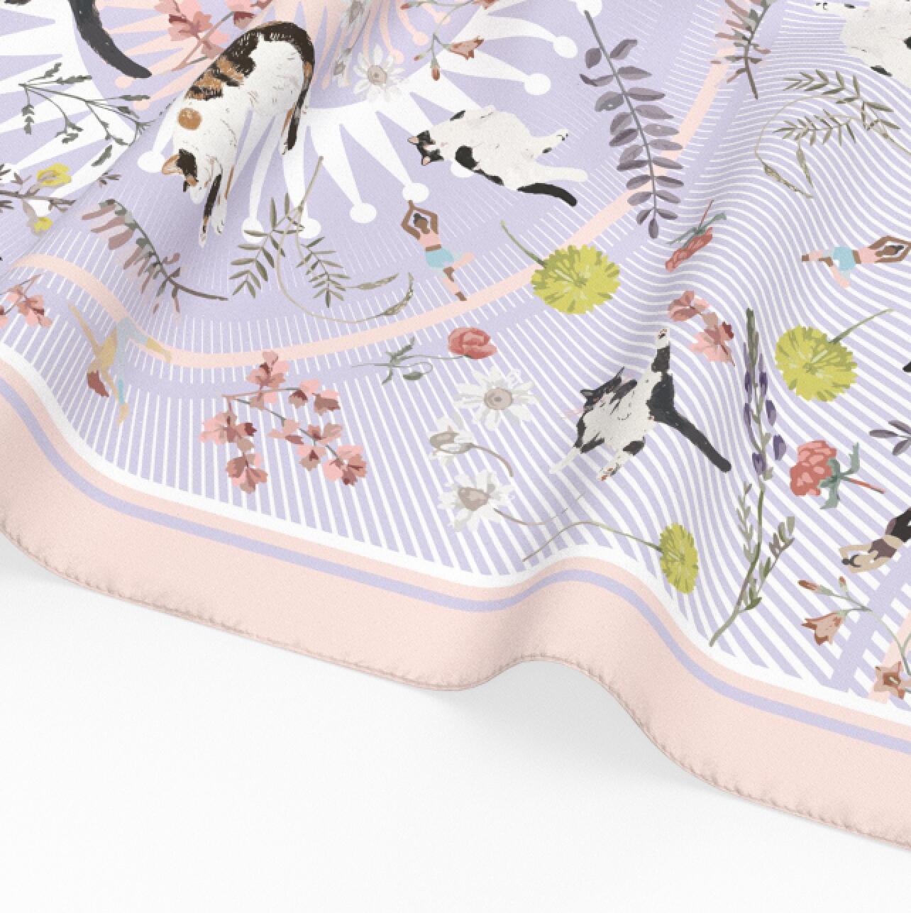 "Yogis Cat and Flower" Diamond Shape Silky Scarf