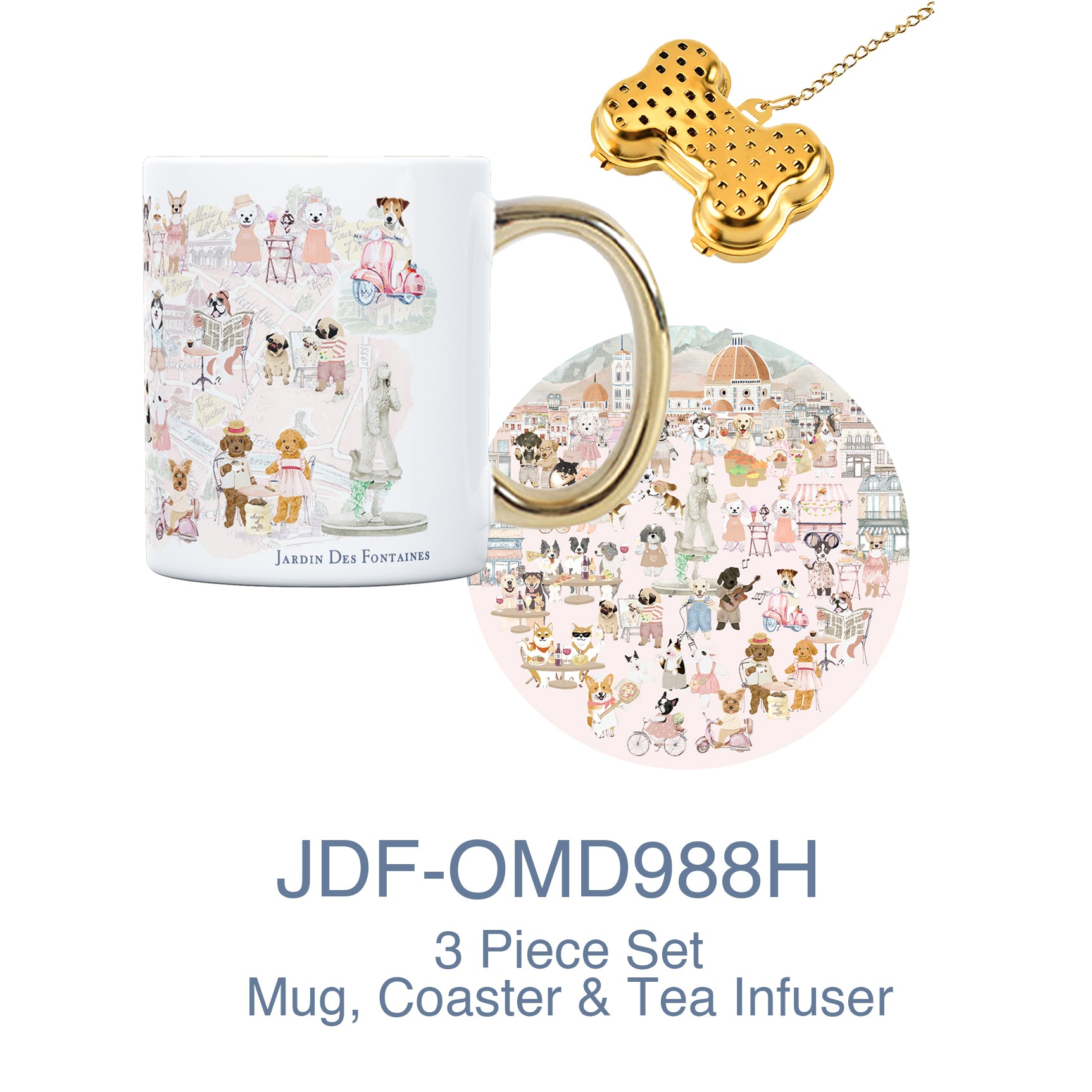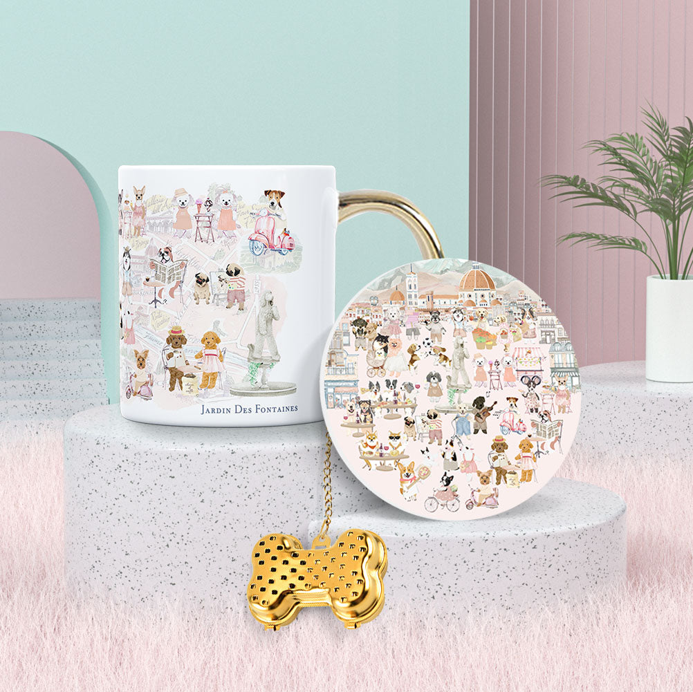 "Oh My Dog" Mug, Tea Infuser and Coaster Set
