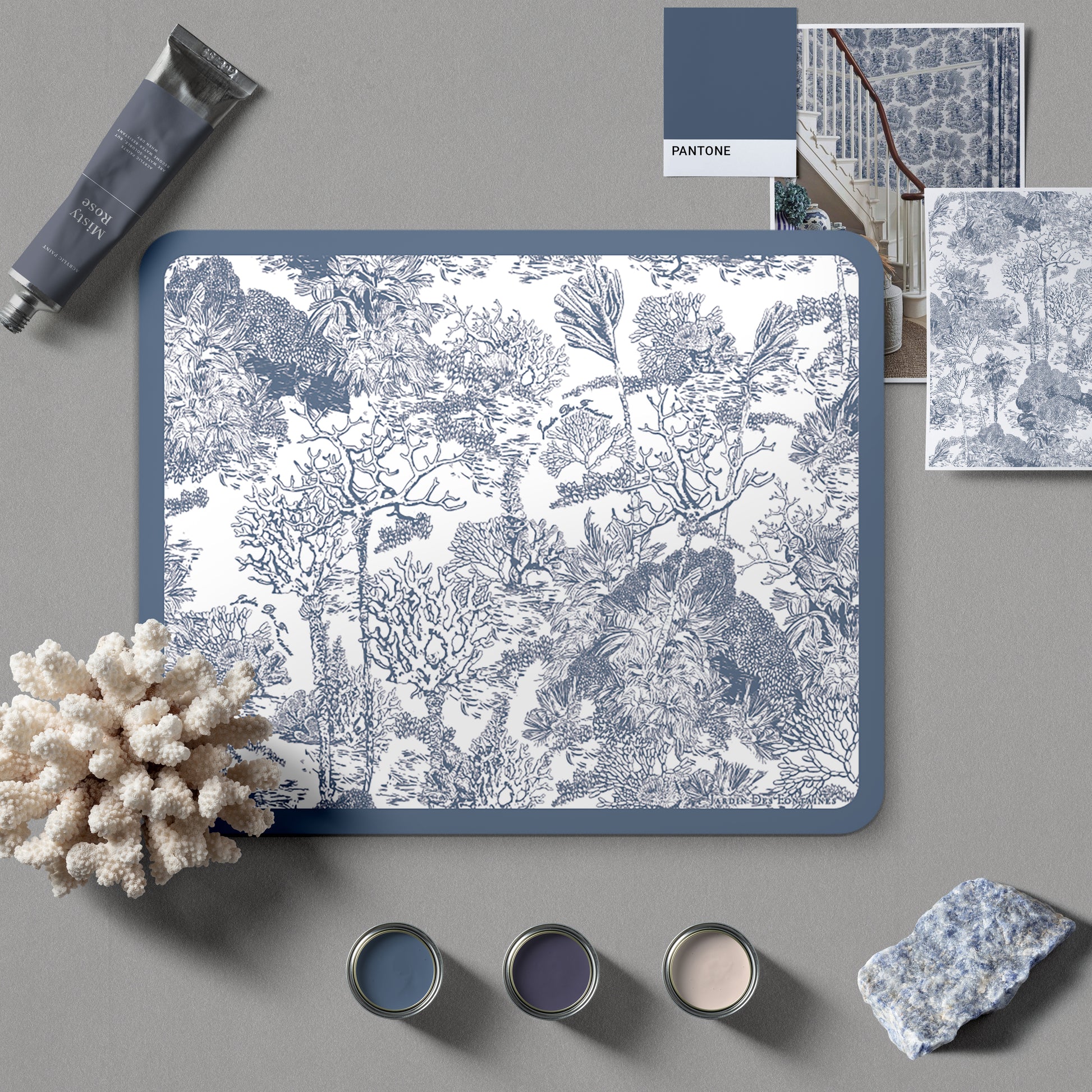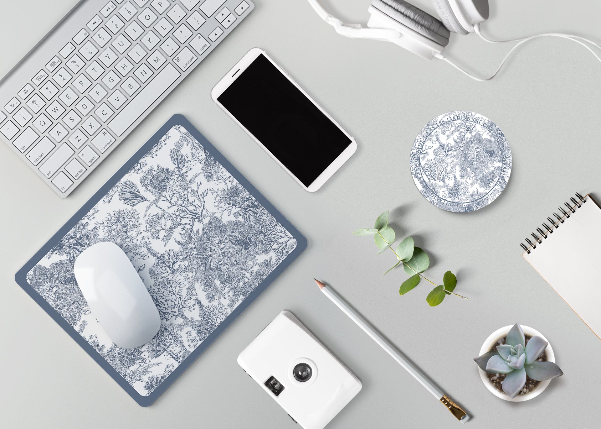 "Toile De Jouy" PU Leather Mouse Pad