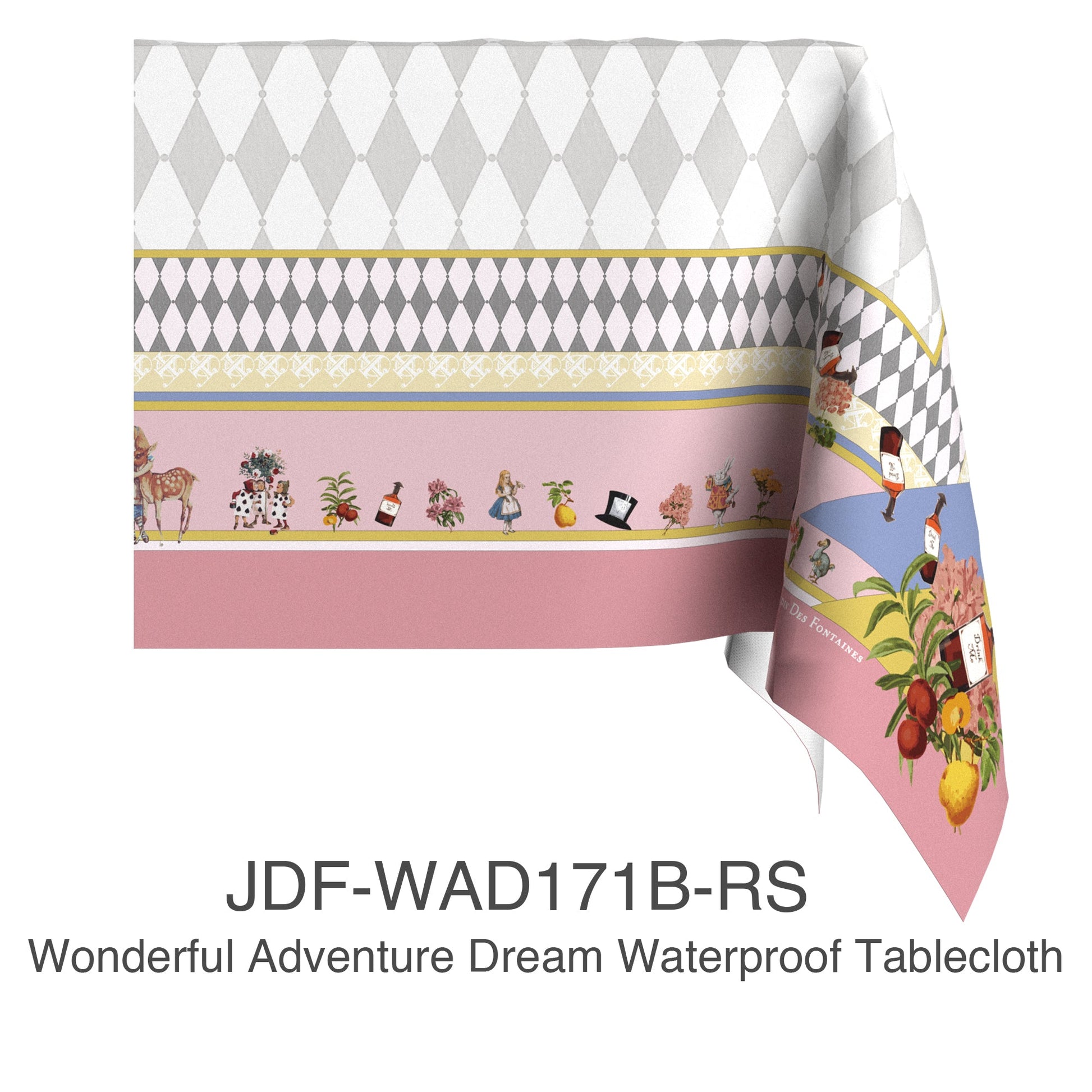 "Wonderful Adventure Dream" Pink Argyle Waterproof Tablecloth